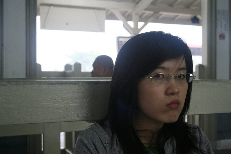 我們在集集火車站裡 , 外面下了滂沱大雨 , 眼看假日就要被大雨一點一滴侵蝕 , 但 , 也無可奈何 , 因為除了躲雨別無它法 , 心情鬱悶地等待.