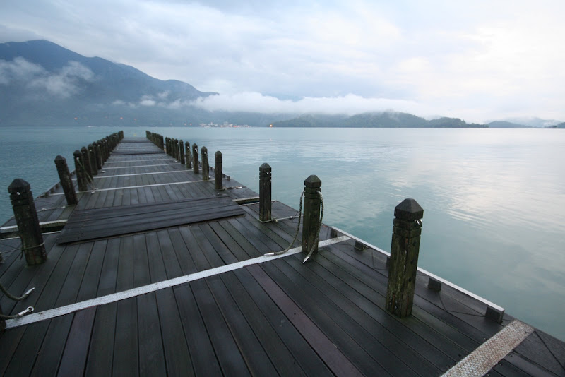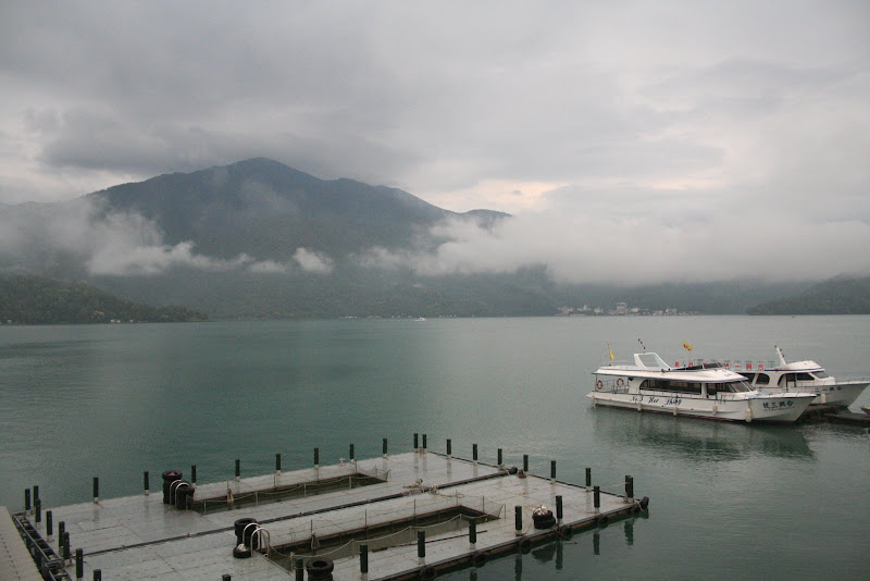 等下去也不是辦法 , 碰碰運氣往日月潭出發 , 感謝老天 , 因為一到日月潭雨就停了 , 也因為一場大雨讓日月潭上鋪上一層薄霧 , 構成一幅美麗的風景.